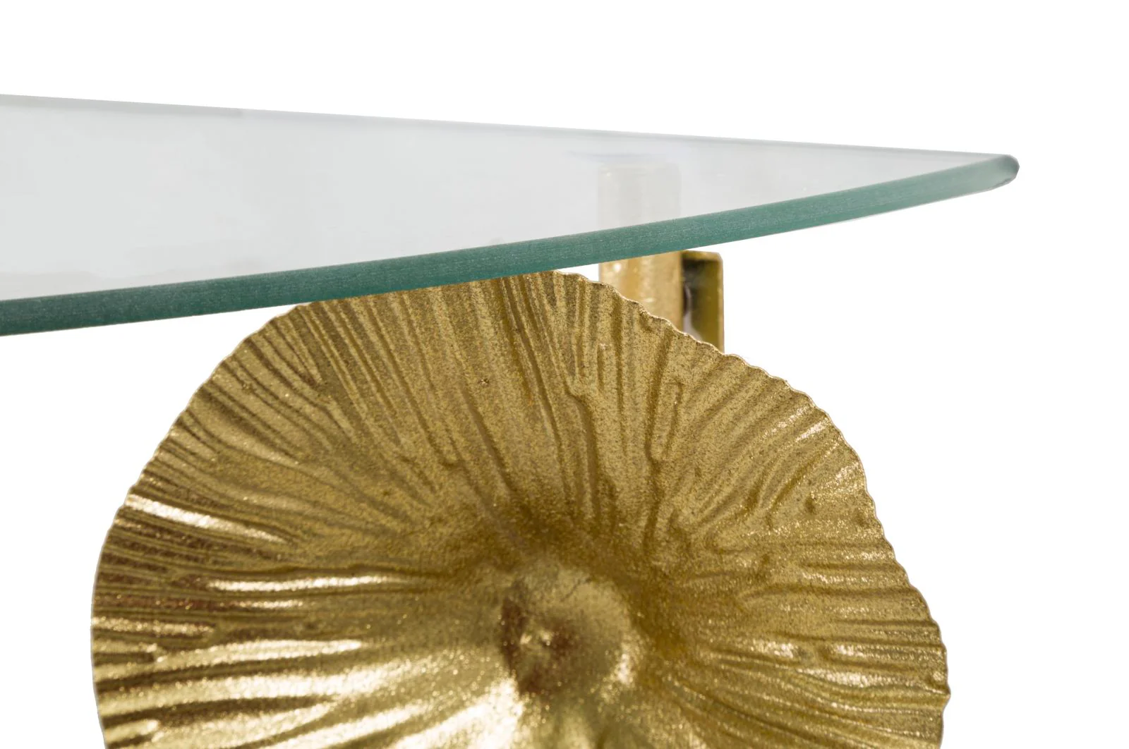 Comodino Semicircolare Tisty in Metallo Dorato con Piano in Vetro 60x30x40 cm