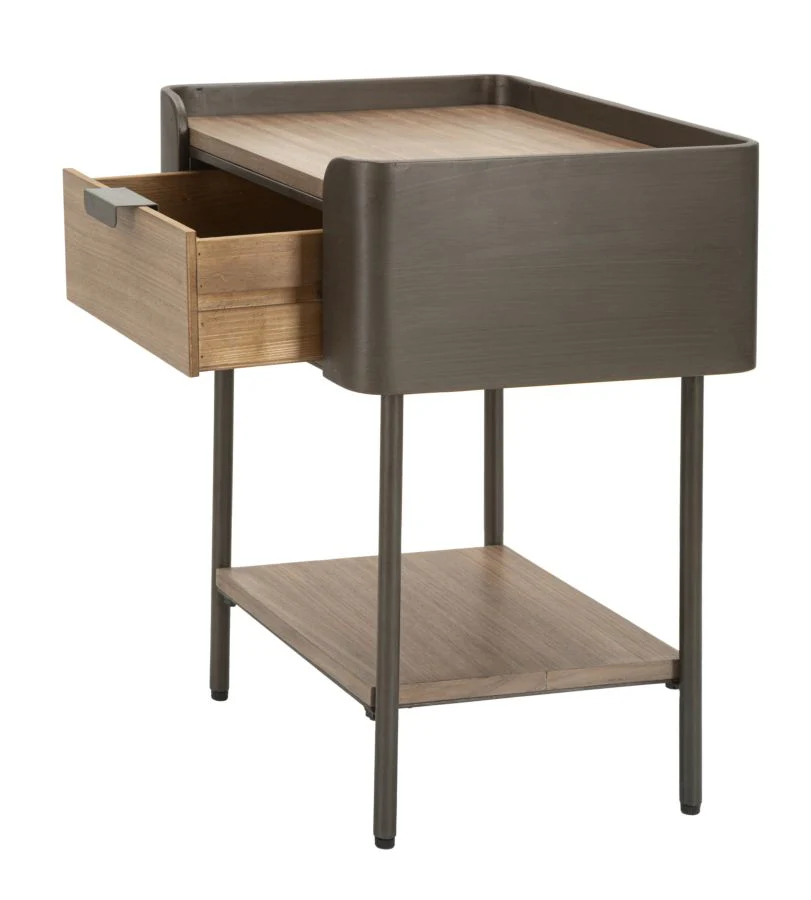 Scopri il Comodino Toronto, un affascinante pezzo di arredo che unisce funzionalità e stile. Con dimensioni di 50,5 x 41 x 60 cm, questo comodino è realizzato in metallo e legno, garantendo robustezza e durata nel tempo.
