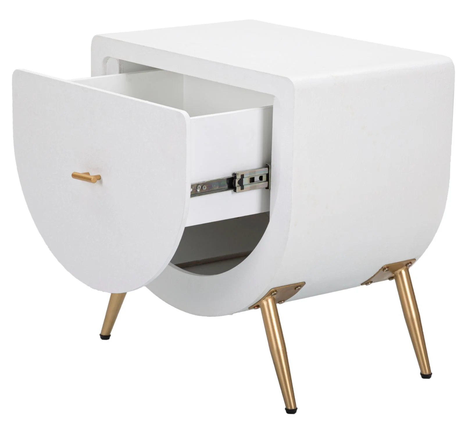 - Gambe in Metallo Dorato: Le gambe, da assemblare, non solo garantiscono stabilità ma aggiungono anche un elemento di lusso al design, rendendo il comodino un vero e proprio pezzo d'arredo.