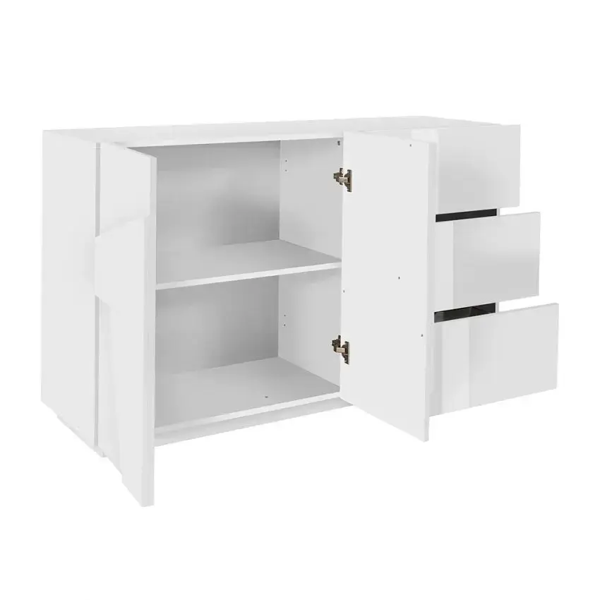 Credenza Moderna a 2 Ante Battenti e 3 Cassetti in Bianco Lucido PING